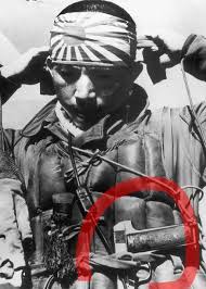 2007年の愛知県長久手発砲立てこもり事件で使用されたのもその一つで、欧米では重慶爆撃隊員の写真 https://encrypted-tbn2.gstatic.com/images?q=tbn:ANd9GcSShk1Hnmlv7oBExvIwHNTExkrXYofr95nsF_XI9qT6_bH_vPF4 が特攻隊員のものとして広まり、これをぶら下げていたので有名になっています。